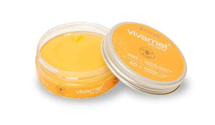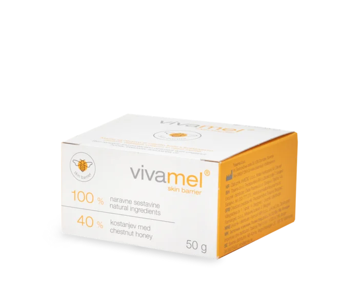 Vivamel Skin Barrier mazilo je naravni izdelek, namenjen negi tanke, občutljive ali razdražene kože ter zaščiti okolice že zaceljenih ran. Z uravnavanjem vlažnosti podpira naravne procese obnove kože. Mazilo z medom, čebeljim voskom in oljem jojobe ima nežno, mazljivo formulacijo, ki se hitro vpije v kožo in ne pušča mastnega občutka.