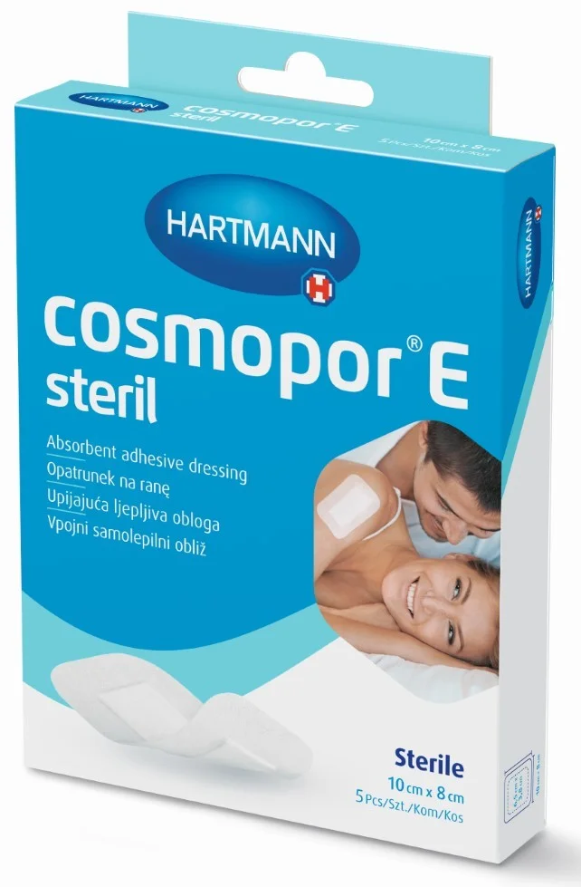 Cosmopor E je sterilni obliž za oskrbo rane iz mehke samolepilne podloge iz netkanega tekstila in hipoalergenega poliakrilatnega lepilnega nanosa z vpojno blaznico, ki se ne lepi na rano, odstranjuje pa se brez bolečin. Obliž Cosmopor E je primeren za oskrbo pooperativnih ran in za sterilno prekrivanje majhnih poškodb, npr. v prvi pomoči.