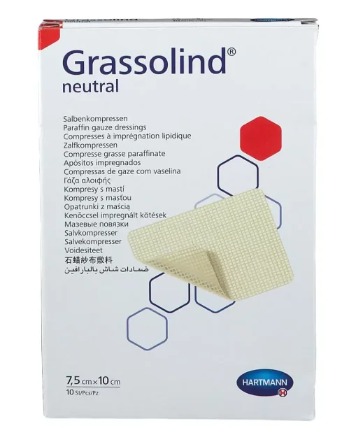 Grasolind, Neutral vazelinska gaza 7. 5 x 7. 5 cm, 10 gaz