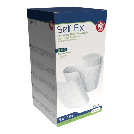 PiC Self Fix je elastični samolepljivi povoj za pritrditev sanitetnega materiala ali nežno oporo pri manjših poškodbah, kot so zvini in udarnine. Povoj se zaradi majhnih delcev lateksa lepi sam nase, ne sprijema pa se s kožo ali dlako, kar omogoča enostavno in nebolečo uporabo brez dodatnih pripomočkov, kot so sponke ali obliži. Izdelek je na voljo v več različnih dimenzijah.