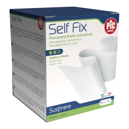 PiC Self Fix je elastični samolepljivi povoj za pritrditev sanitetnega materiala ali nežno oporo pri manjših poškodbah, kot so zvini in udarnine. Povoj se zaradi majhnih delcev lateksa lepi sam nase, ne sprijema pa se s kožo ali dlako, kar omogoča enostavno in nebolečo uporabo brez dodatnih pripomočkov, kot so sponke ali obliži. Izdelek je na voljo v več različnih dimenzijah.