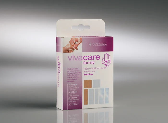 Vivacare Family je set sterilnih obližev različnih dimenzij in materialov, namenjen oskrbi manjših ran in poškodb kože. Obliži imajo vpojno blazinico, ki učinkovito vpija izločke in se ne prijema na rano, kar olajša odstranjevanje. Obliži v kompletu omogočajo izbiro najprimernejšega obliža glede na velikost rane, nekateri so primerni za občutljivo kožo, drugi pa za rane, ki jih je potrebno zaščititi pred vodo.