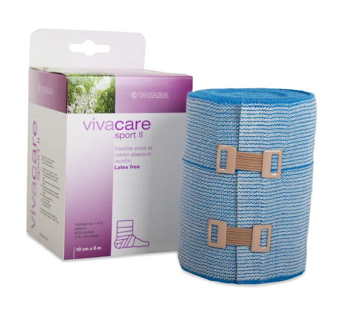 Vivacare Sport je elastični povoj, namenjen podpori in zaščiti sklepov. Povoj je primeren tako kot preventivna podpora pri športnih aktivnostih kot tudi za oskrbo zvinov, nategov ali drugih mehkih poškodb, kjer je potrebna dodatna opora. Povoj je izdelan iz materiala z visokim deležem bombaža in je elastičen, kar omogoča prilagodljivo oporo in stabilnost. Temnejša črta označuje naslednji zavoj, kar olajša pravilno povijanje. Izdelek ne vsebuje lateksa in je primeren za večkratno uporabo. Na voljo je v dveh dimenzijah.