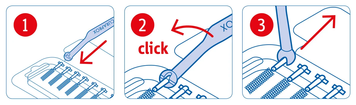 Patentirana kirurška žica Cural omogoča varno uporabo tudi pri občutljivih dlesnih, sistem na klik pa omogoča enostavno menjavo ščetk in uporabo z vsemi držali Curaprox CPS. Redna uporaba pomaga preprečevati vnetje dlesni, slab zadah in karies v medzobnih prostorih.