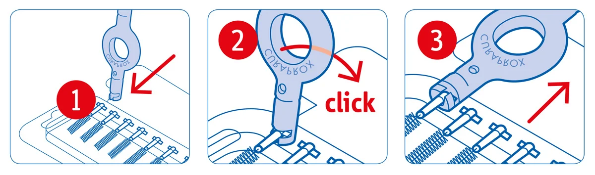 Medzobno ščetko CPS vstavite pravokotno na os držala v prečno odprtino, nato pa jo premaknite v vodoravno lego. Pri tem boste slišali rahel klik, kar potrjuje, da je ščetka trdno učvrščena.