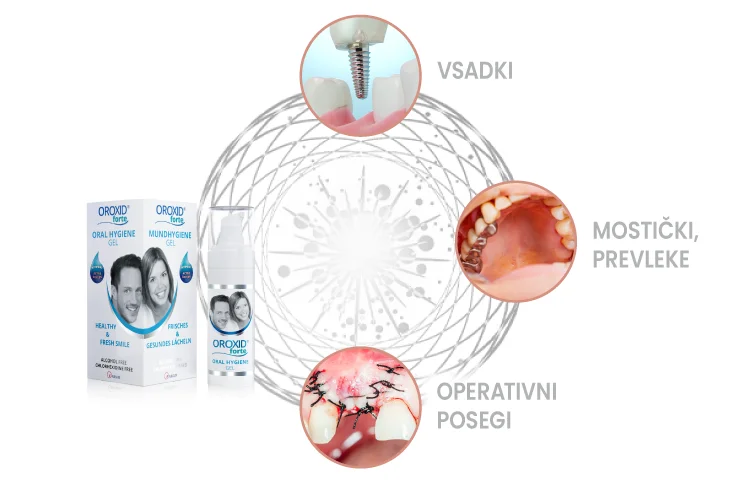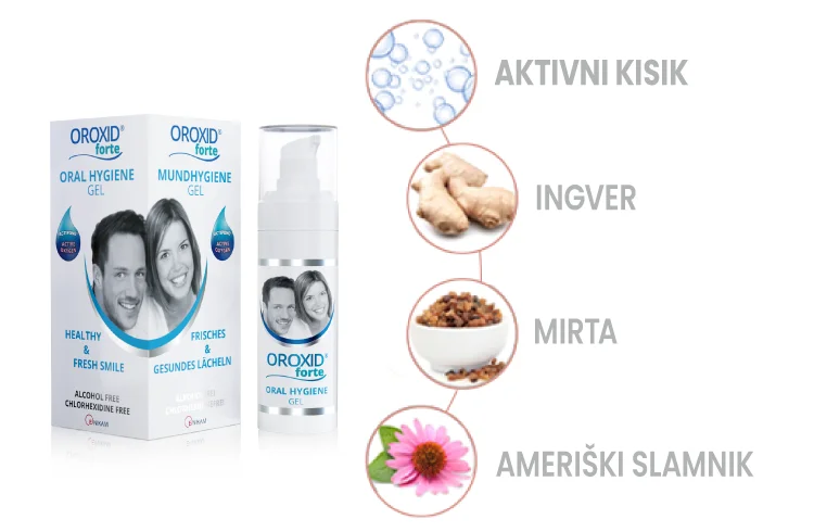 Oroxid forte oralni gel je medicinski pripomoček z aktivnim kisikom, namenjen intenzivni negi vnetih in poškodovanih ustnih tkiv. Uporablja se pri bolečih dlesnih, poglobljenih obzobnih žepih, aftah ter po zobozdravstvenih posegih, kjer je potrebna močnejša podpora celjenju. Gelna struktura omogoča dolgotrajno delovanje na mestu nanosa, pomaga pri regeneraciji tkiva ter zmanjšuje znake vnetja. Ne vsebuje alkohola in klorheksidina, zato je nežen, a izjemno učinkovit pri zahtevnejših ustnih težavah.