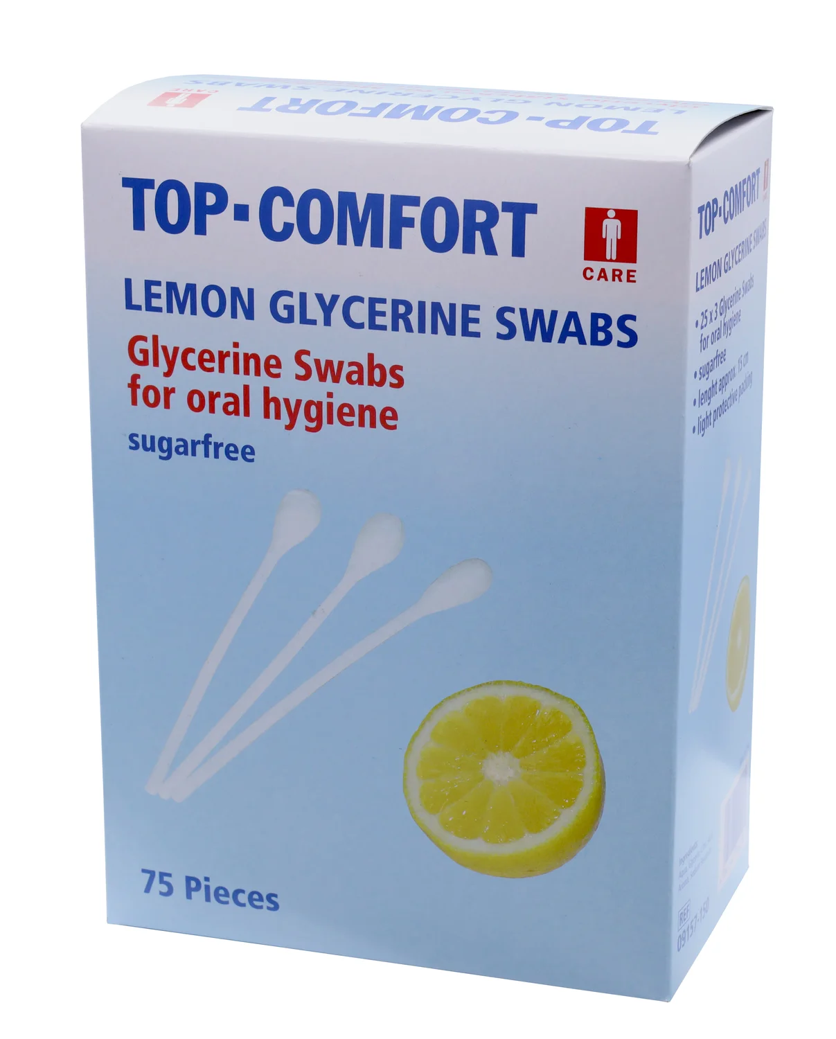 Top Comfort vatirane palčke so pripomoček za nego ustnic in ustne votline, posebej zasnovane za vlaženje, osvežitev in ustno higieno. Vsaka palčka ima mehko vatirano glavo, prepojeno z glicerinom in naravnim okusom limone, ki zagotavlja prijeten občutek svežine in vlaženja. Palčke so pakirane v zavitkih po 3 kose za praktično in enostavno uporabo.