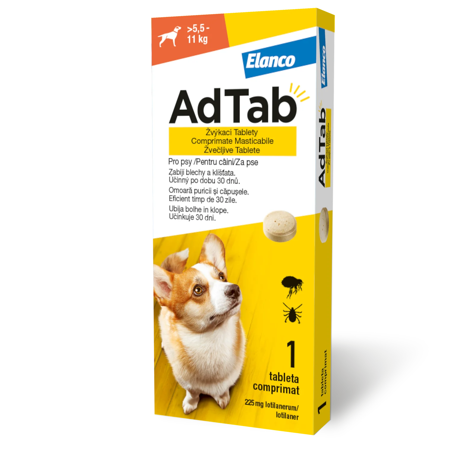 AdTab 225 mg žvečljive tablete za pse (5,5-11 kg), 1 tableta