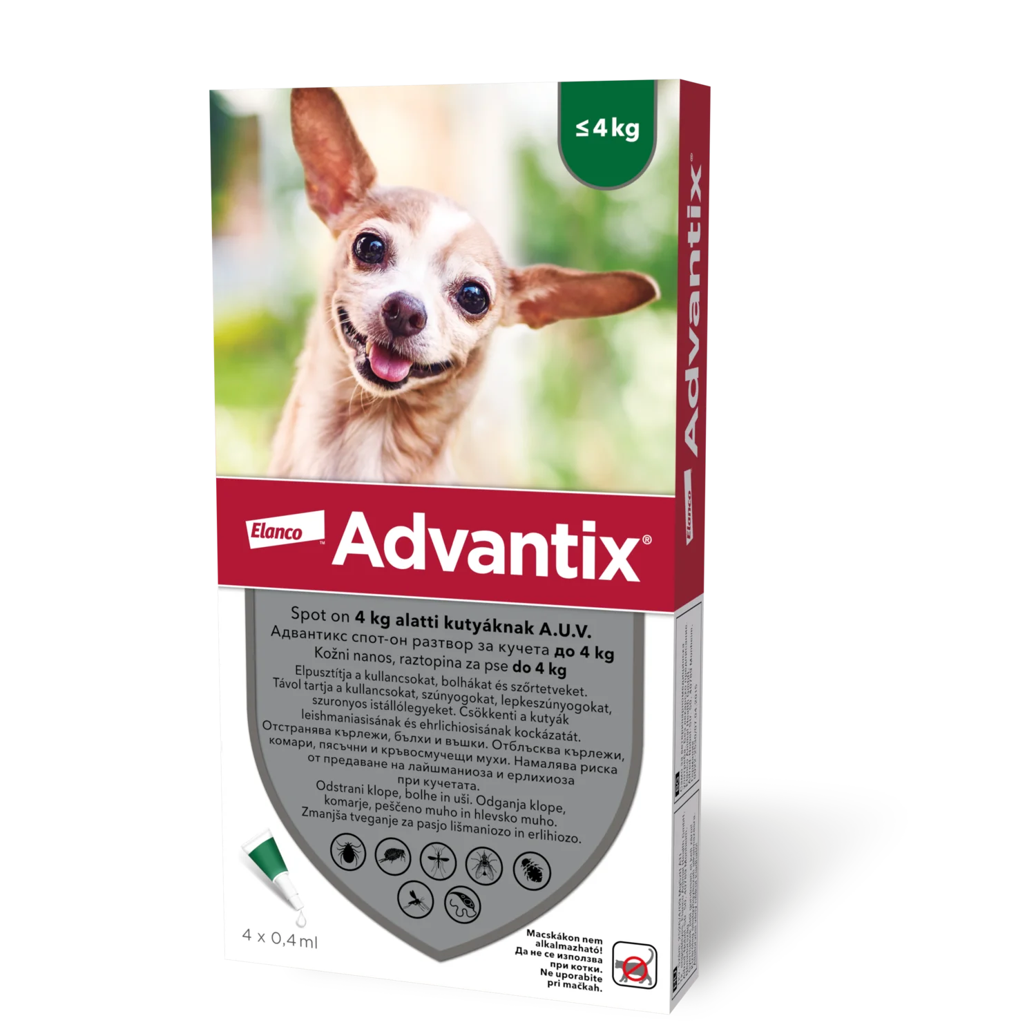 Advantix kožni nanos, raztopina za pse do 4 kg, 0,4 ml, 4 merilne kapalke